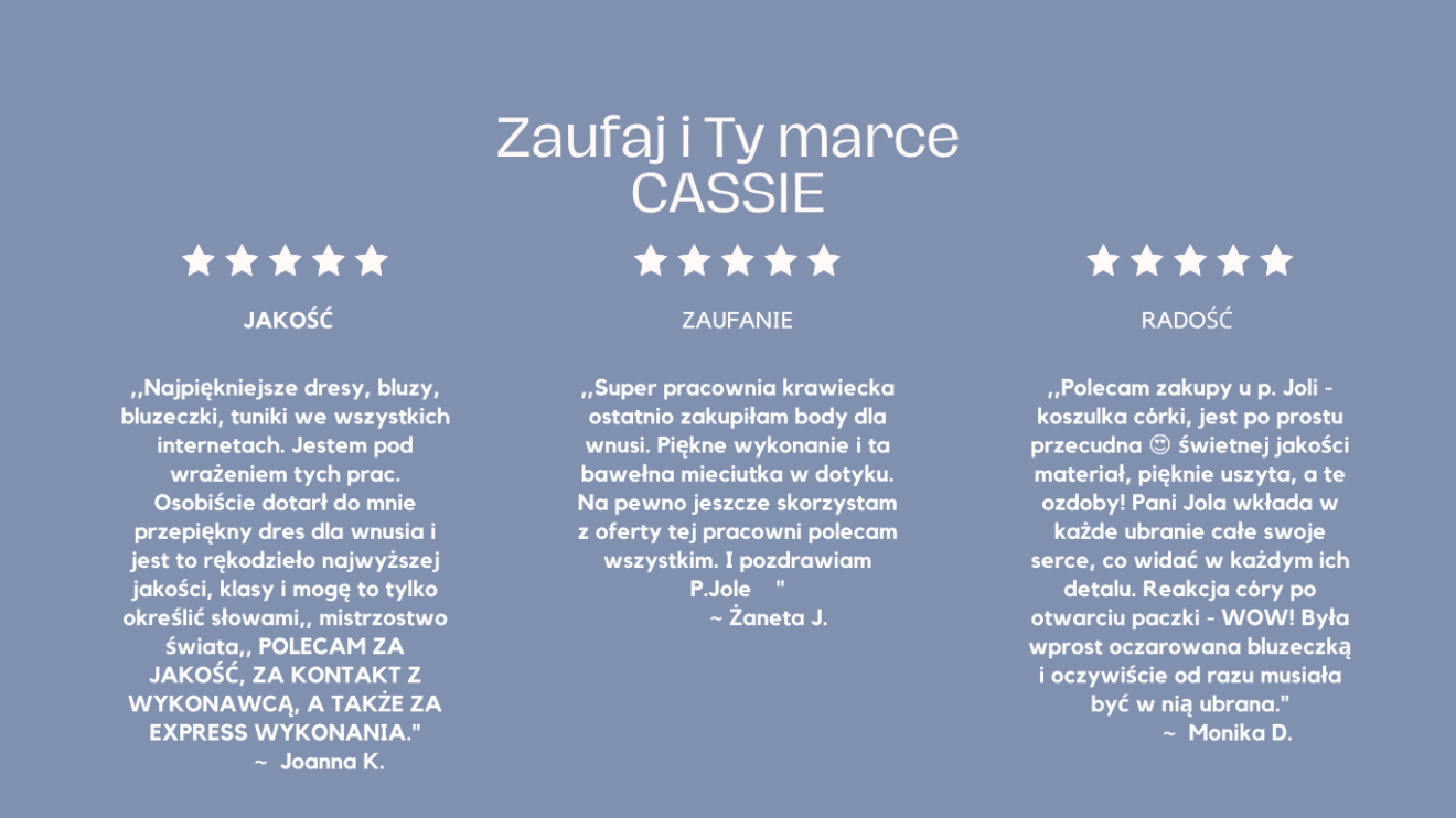 Długoletnie doświadczenie w branży odzieżowej, zapewnia wysoką jakość wykonania ubranek