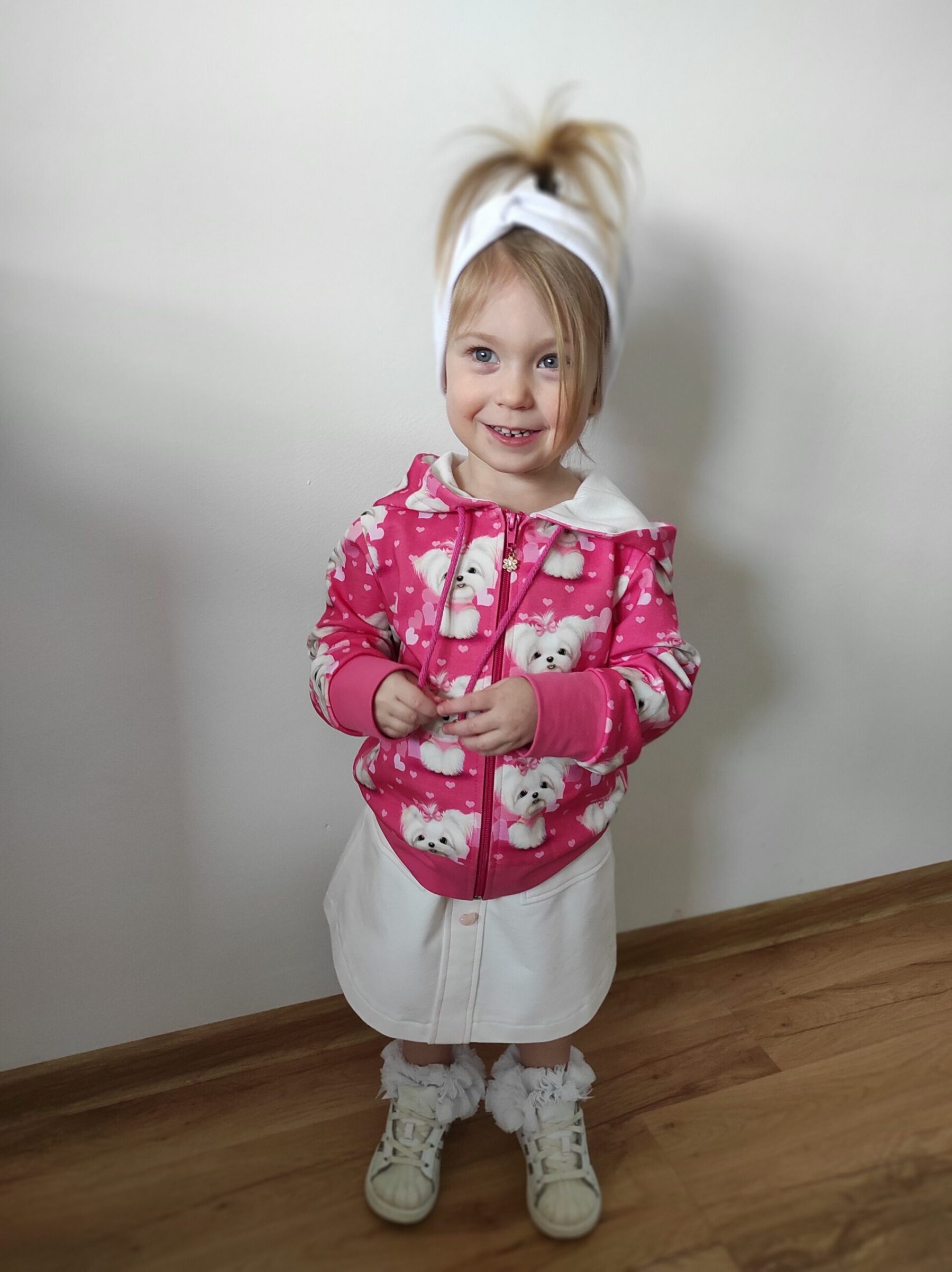 Dzianina jest miękka i przyjemna w dotyku. Niewielki dodatek elastanu sprawia, że jest uciągliwa i nie krępuje ruchów dziecka. Dzianina jest wysokogatunkowa, z Certyfikatem OEKO-TEX Standart 100, wyprodukowana w Polsce.