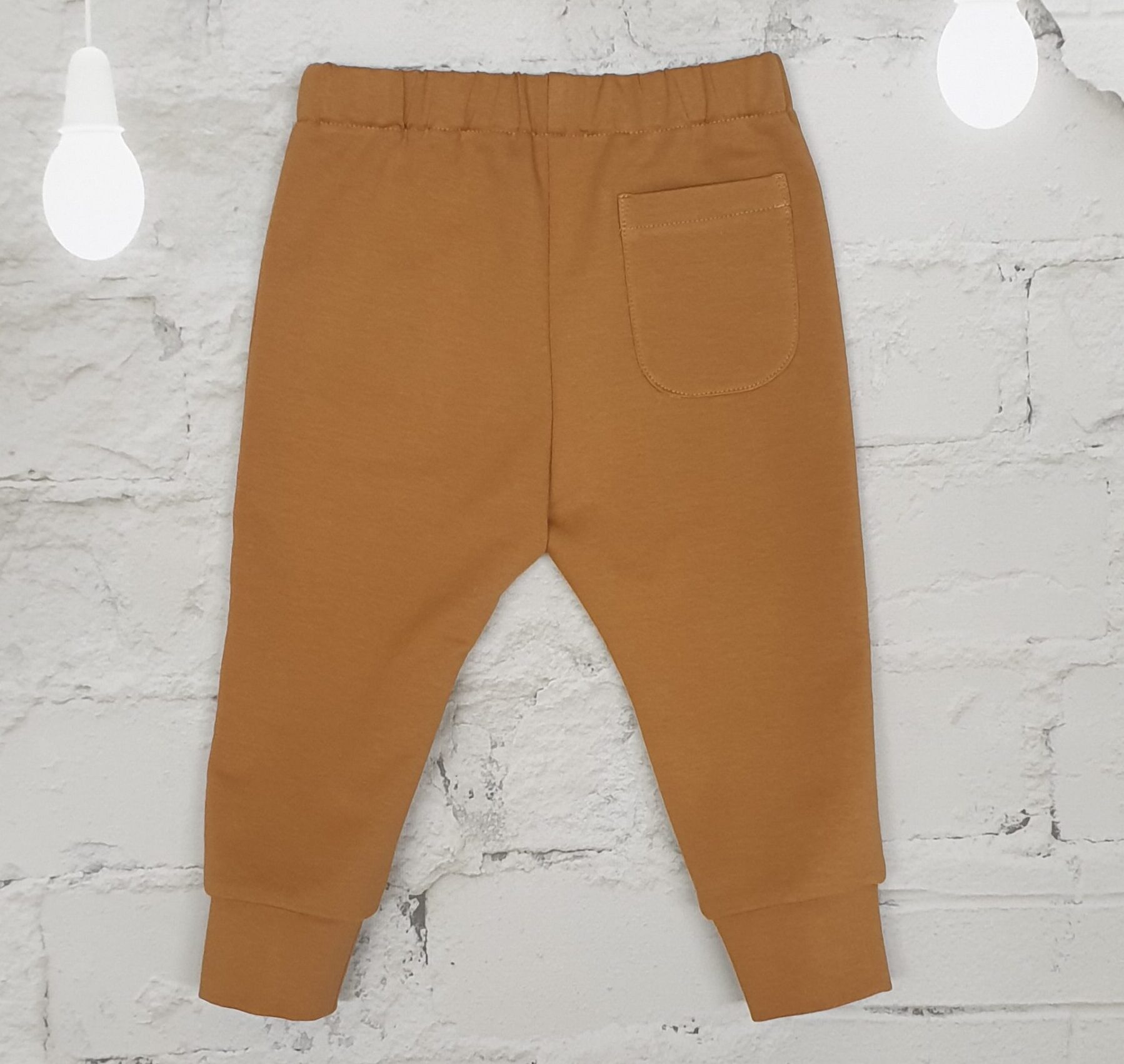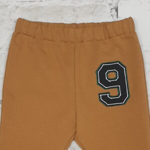 Spodnie dla chłopca z dzianiny dresowej pętelki. W szwach bocznych i z tyłu kieszonki. Na lewym przodzie naszyta dekoracyjna aplikacja. W talii guma 2,5cm z możliwością regulowania obwodu pasa. Ten sposób zapewnia, że można samemu dopasować wymiar do obwodu maluszka. Sportowy, luźny krój zapewnia komfort noszenia, nie krępując ruchów dziecka. Sprawdzi się jako strój na co dzień jak i od święta.